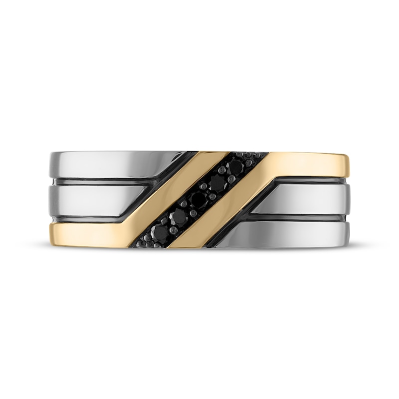 • Men's Black Diamond Diagonal Wedding Band 1/8 ct tw Two-Tone Gold Plated