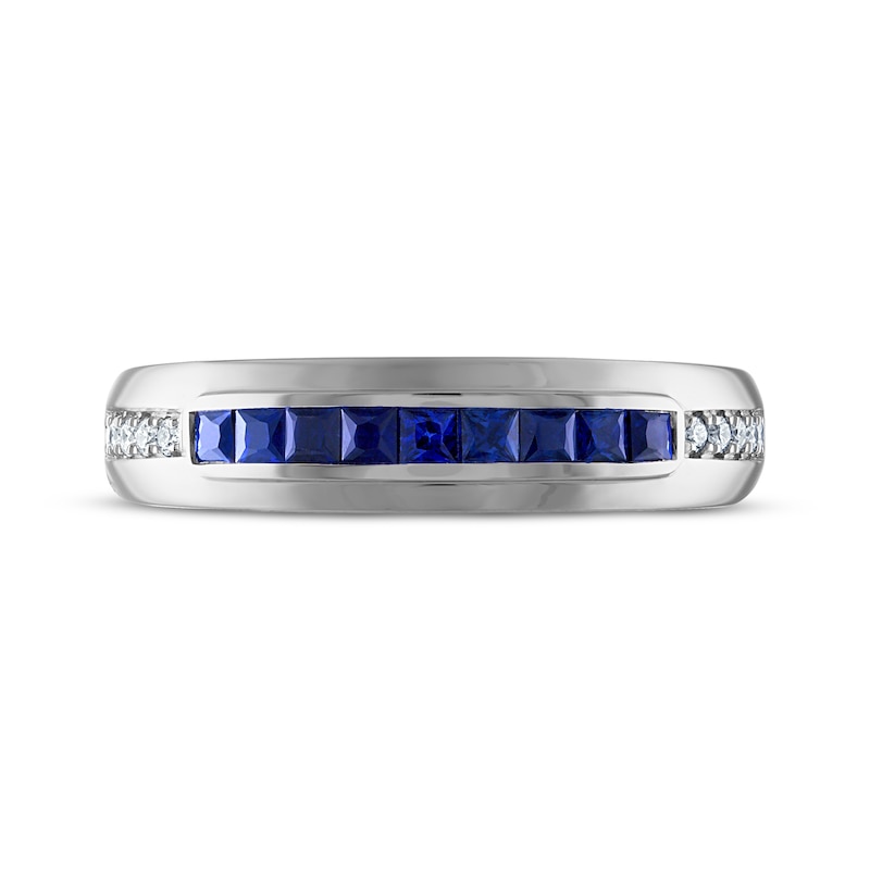 • Men's Square-Cut Blue Sapphire & Diamond Wedding Band 1/10 ct tw White Gold Plated