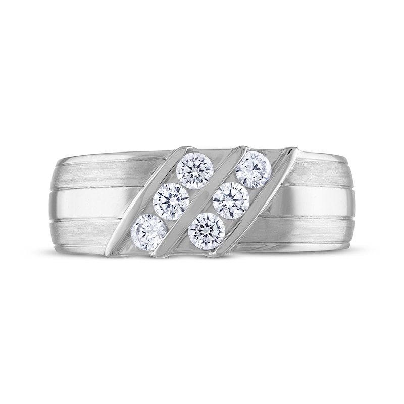 • Men's THE LEO Diamond Round-Cut Diagonal Wedding Band 5/8 ct tw White Gold Plated