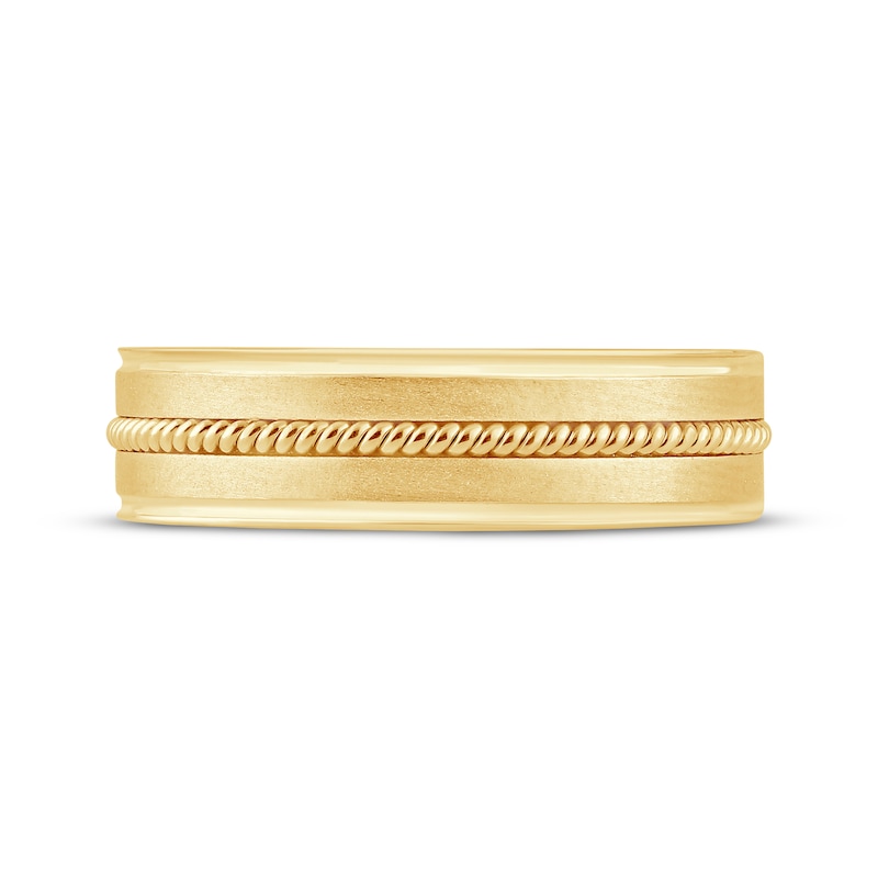 Down the center of the band, a rope twist border lends a sophisticated touch