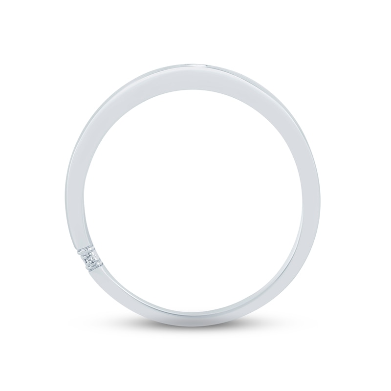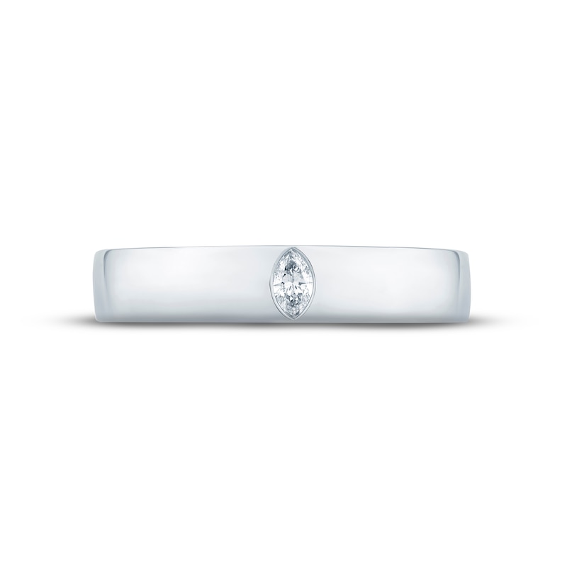 This distinguished wedding band is crafted in 18K white gold and features a magnificent marquise-cut diamond bezel-set in the center. A signature element of diamonds encircles the ring, symbolizing unity and eternal love. The independently certified diamonds total 1/10 carat in weight. From the Monique Lhuillier Bliss collection, available exclusively at KAY. Please note: This ring is available in limited sizes. If you don't see your size here, please visit a store to order your ring.