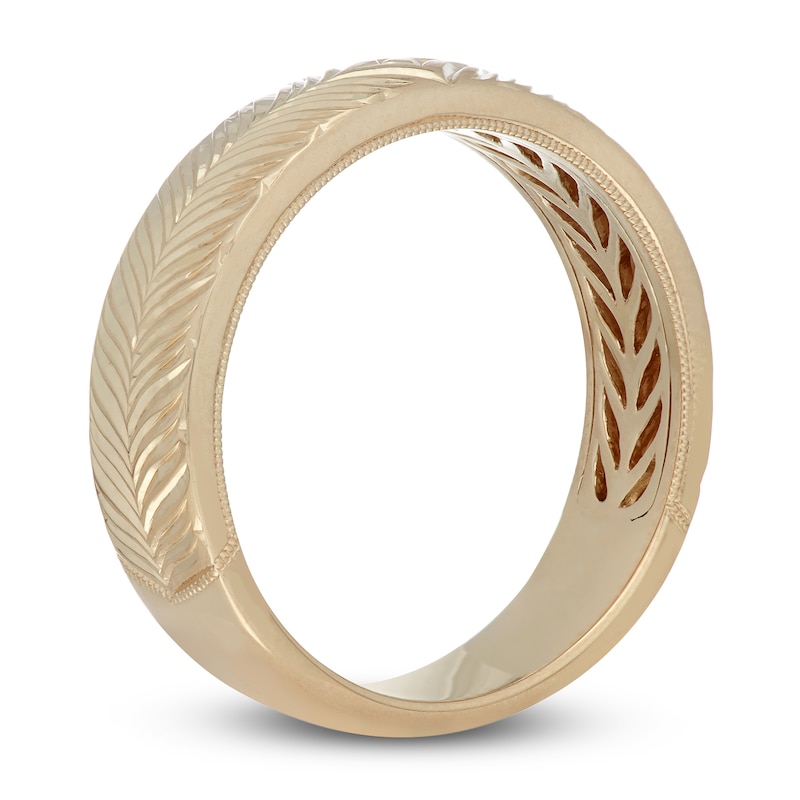 Of course, you'd do it all over again and this magnificent anniversary band from the Neil Lane® collection is perfect for celebrating your milestone moment. Radiant in its simplicity, the glistening silhouette is engraved with an artistic vine motif. The band is crafted in classic 14K yellow gold and measures 6mm.