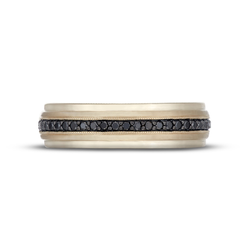 This stunning wedding band is made for your milestone moment. Featured in our Neil Lane® collection, the silhouette showcases a striking center of round-cut black diamonds. Crafted in 14K yellow gold with milgrain detailing, the band has a total diamond weight of 1/4 carat.