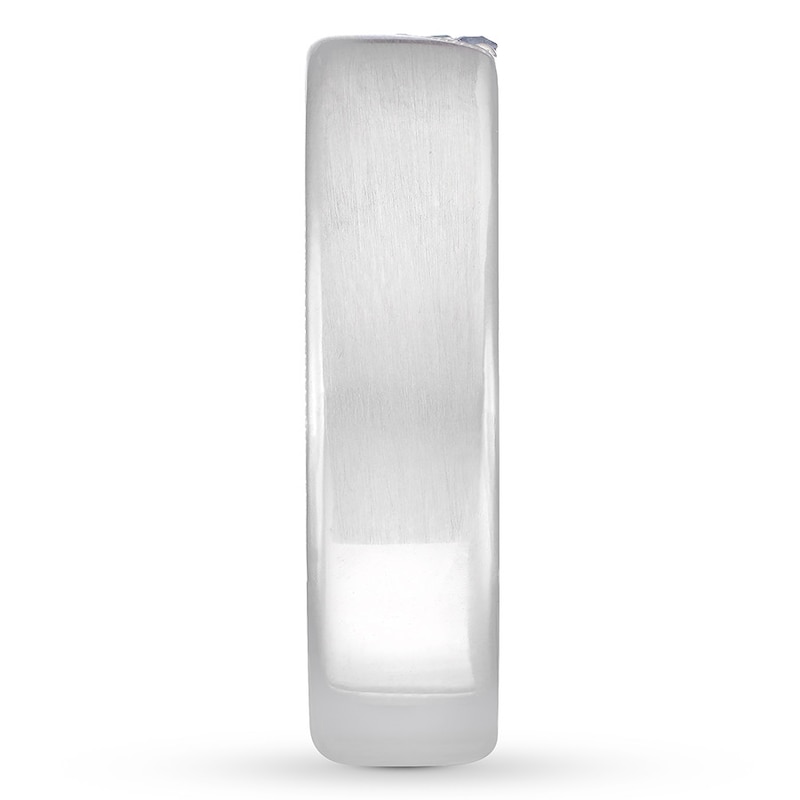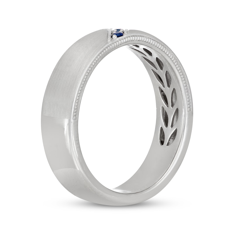 Natural sapphires set diagonally in a band of brushed 14K white gold create a distinctive look in this striking Neil Lane™ men's wedding band. Milgrain detail completes the look.