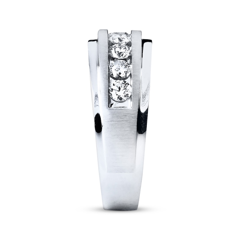 Nine impressive round diamonds align to create the memorable look of this wedding band for him. The ring has a total diamond weight of 1 carat and is set in 10K white gold. Available online while supplies last. Previously Owned Treasures are not eligible for in-store pickup. Previously Owned Treasures may only be shipped either to your home address or to an alternate address. Price comparison based on new item pricing.