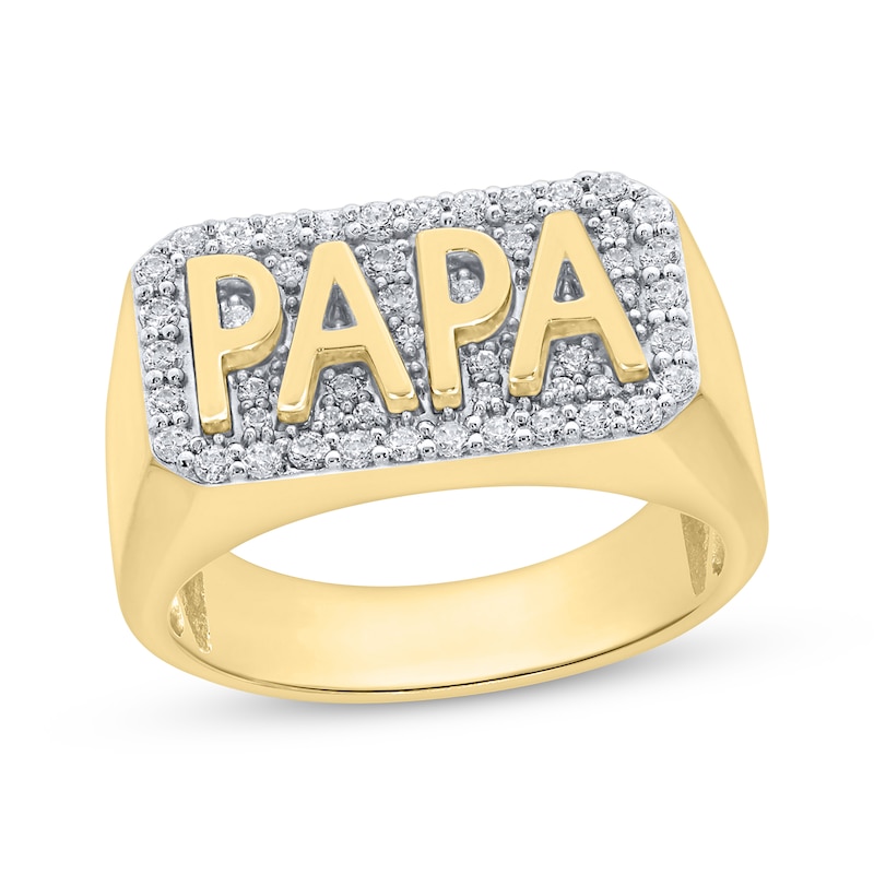 Men's Diamond "Papa" Signet Ring 1/2 ct tw Yellow Gold Plated