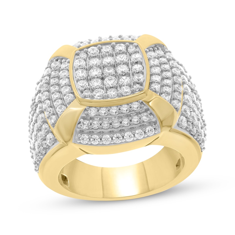 Men's Multi-Diamond Center Cushion-Shaped Tiered Ring 3-3/4 ct tw Yellow Gold Plated