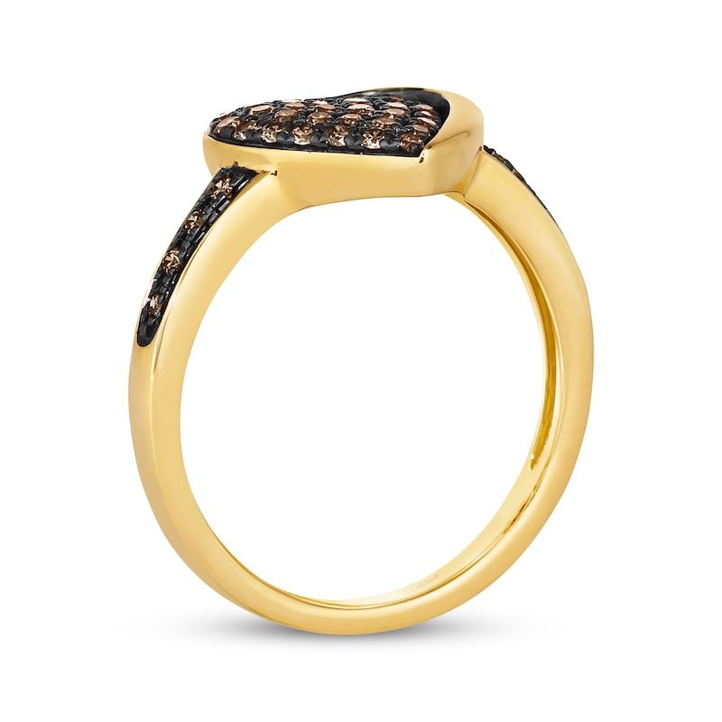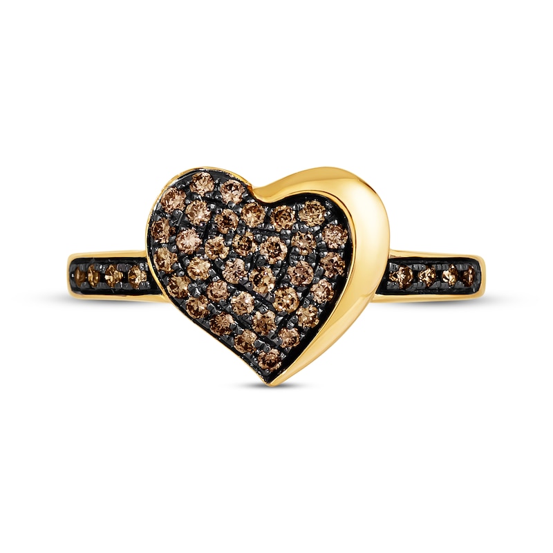 Treat them to delicious round Chocolate Diamonds® with this decadent new collaboration between GODIVA™ x LE VIAN®. Chocolate Diamonds™ shine on the heart-shaped center and sparkle on the shank for a total diamond weight of 1/3 carat. The ring is fashioned in warm 14K Honey Gold™. Le Vian®. Discover the Legend. This ring is available in limited sizes. If you don't see your size here, please visit a store to order your ring.