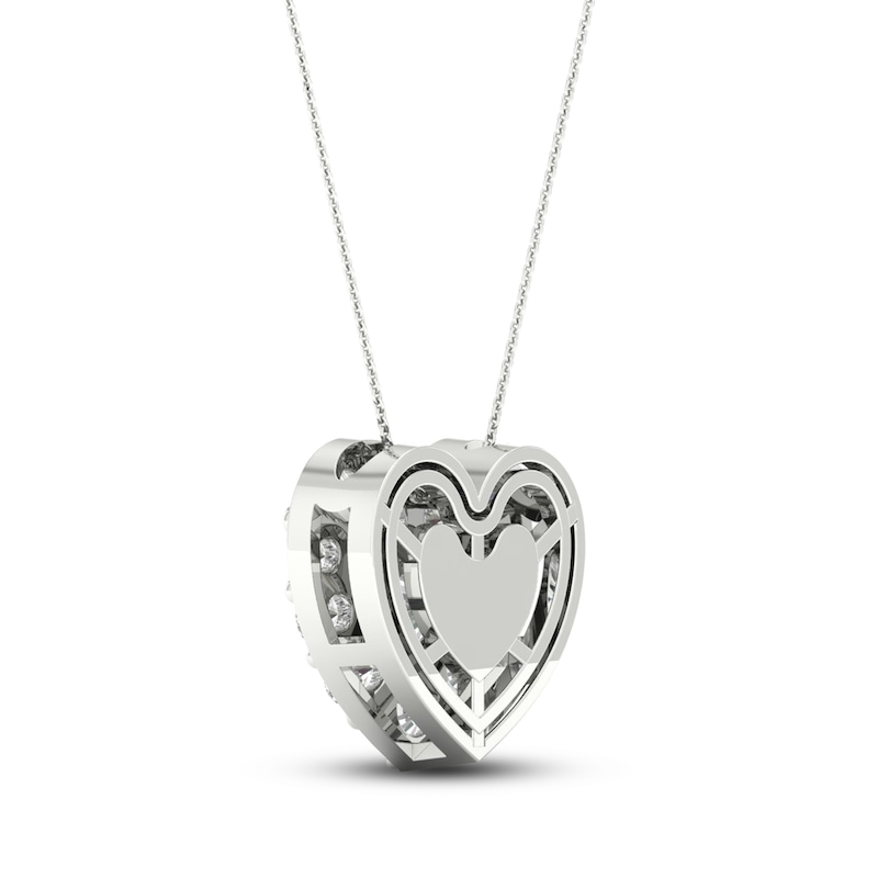 This gorgeous lab-created diamond necklace is crafted in classic 14K white gold and features a heart-shaped pendant embellished with sparkling lab-created, independently-certified diamonds. The beautiful necklace has a total lab-created diamond weight of 1 carat. The striking pendant rests on a cable chain that secures with a lobster clasp and is adjustable from 16 to 18 inches. From the Lab-Created Diamonds by KAY collection.