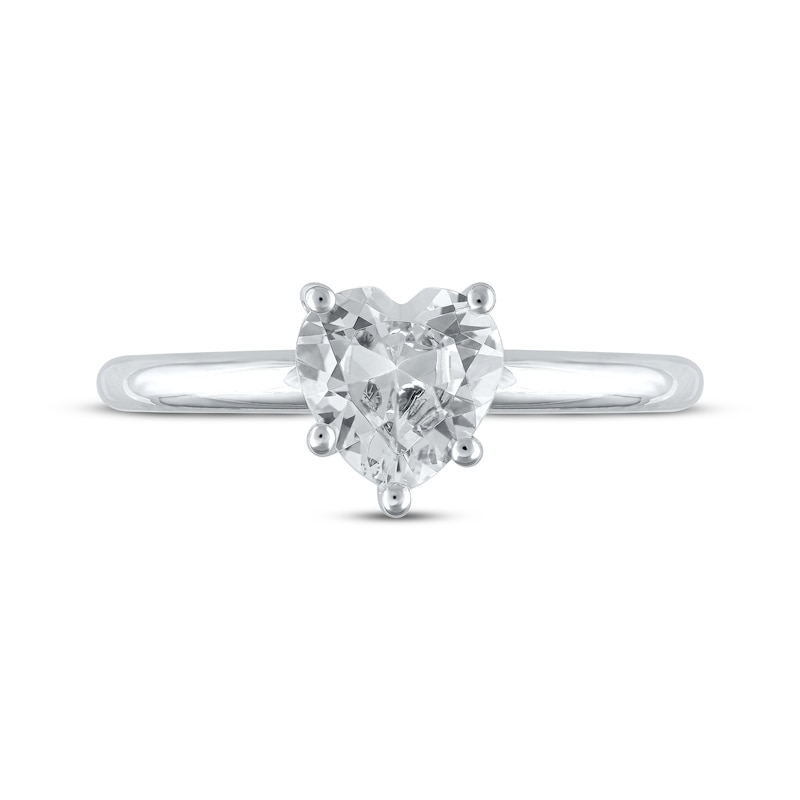 This radiant solitaire ring is the epitome of romance. A 1-carat heart-shaped lab-created diamond stands out along the polished 14K white gold band. The independently certified lab-created diamond is laser-inscribed with a unique Gemscribe® serial number to ensure your peace of mind. From the Lab-Created Diamonds by KAY collection.
