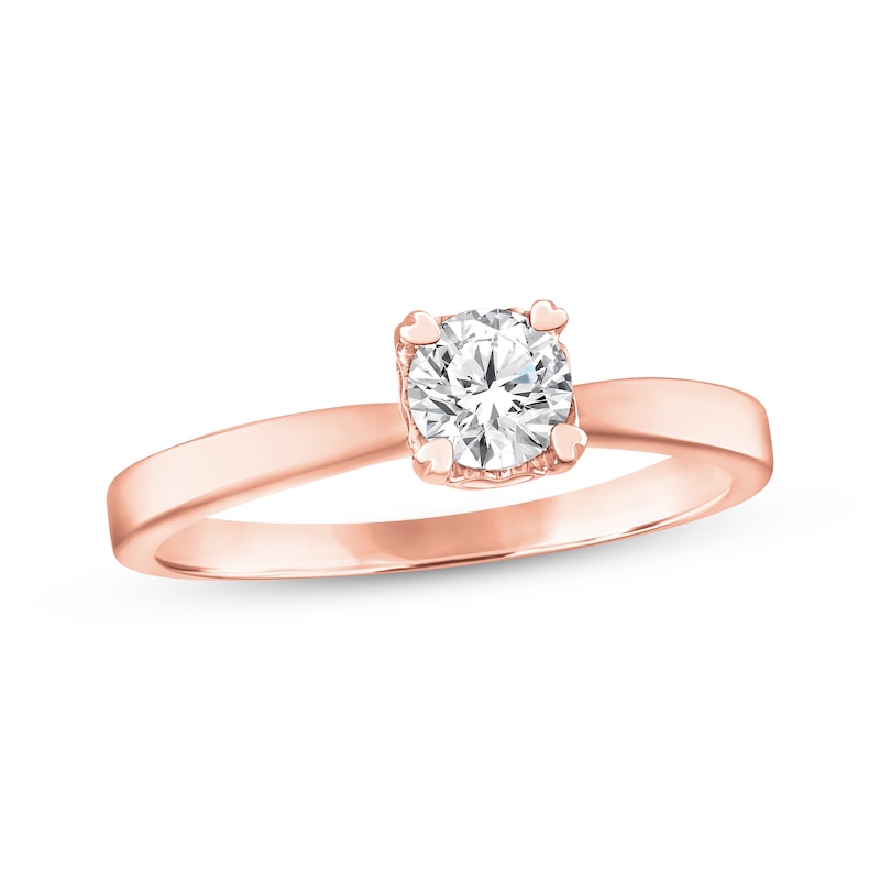 Diamond Solitaire Hearts Ring 1/2 ct tw Rose Gold Plated